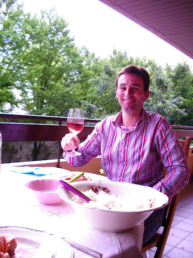 記得我飛抵法國著名酒莊波爾多時,正好是六月上旬,是晴朗乾爽的好天氣,一切是那麼的美好,但最讓我錯亂不適應的,卻是每天天黑的時間是在晚上十一點;習慣上在台北天黑的時候,好像就是該吃晚餐的時間,肚子會自動的會餓起來,但在這兒到八九點天空卻仍像下午三四點的台北一樣明亮,最神奇的是大腦也配合的沒有任何飢餓訊號發出,自然而然就覺得一天的時間相當漫長,可以讓你恣意浪費,凡是可以慢慢地來,尤其是當我坐在露天餐廳啜飲著冰涼的玫瑰紅酒,侍者送上我跟朋友的美味晚餐時,頭頂上空絢麗的晚霞彷彿告訴著我們,住在歐洲是幸福的,not thing to rush。